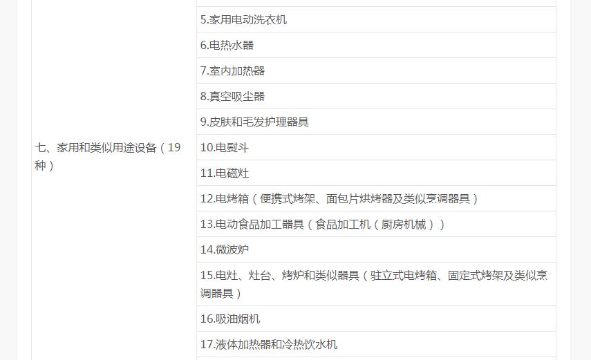 家用電器需要3C認(rèn)證項(xiàng):